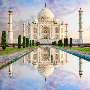 The Taj Mahal stands as a breathtaking white marble mausoleum in Agra, India, renowned for its unparalleled beauty and architectural grandeur. Built by Mughal Emperor Shah Jahan beginning in 1632, this iconic monument honors his cherished wife, Mumtaz Mahal. It features a symmetrical design highlighted by a central dome soaring to 73 meters, flanked by four graceful minarets. The mausoleum is set amidst an expansive garden, complete with reflective pools that enhance its serene and otherworldly charm.
